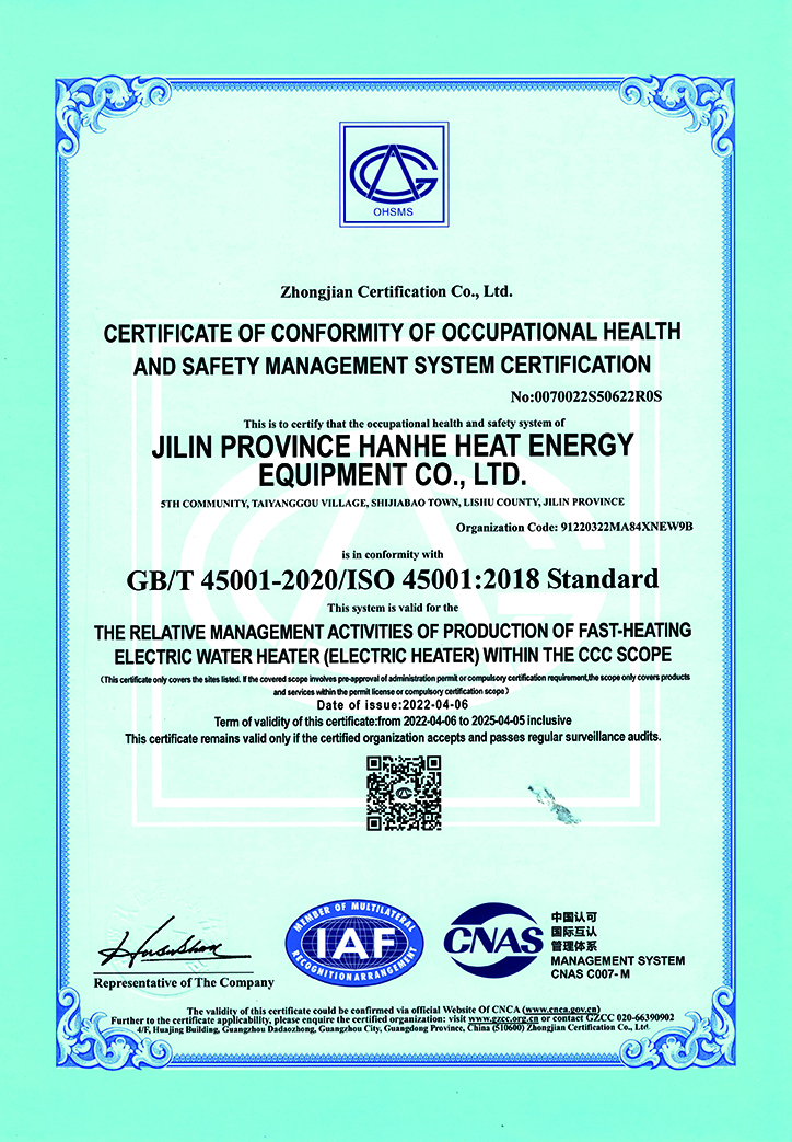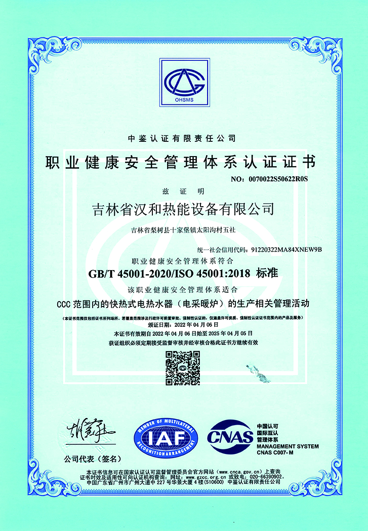 汉和-职业健康安全管理体系证书