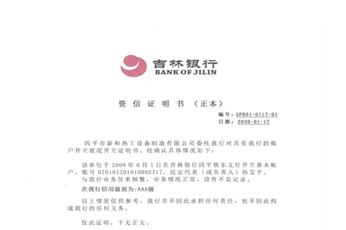 吉林银行资信证明书